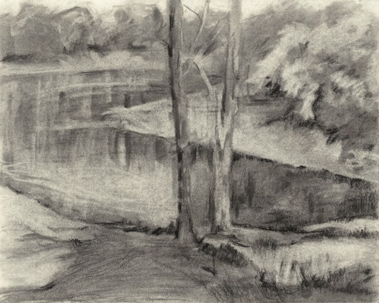 Fortune Cookie Pond, Charcoal on Paper ~ 8” X 9.75”