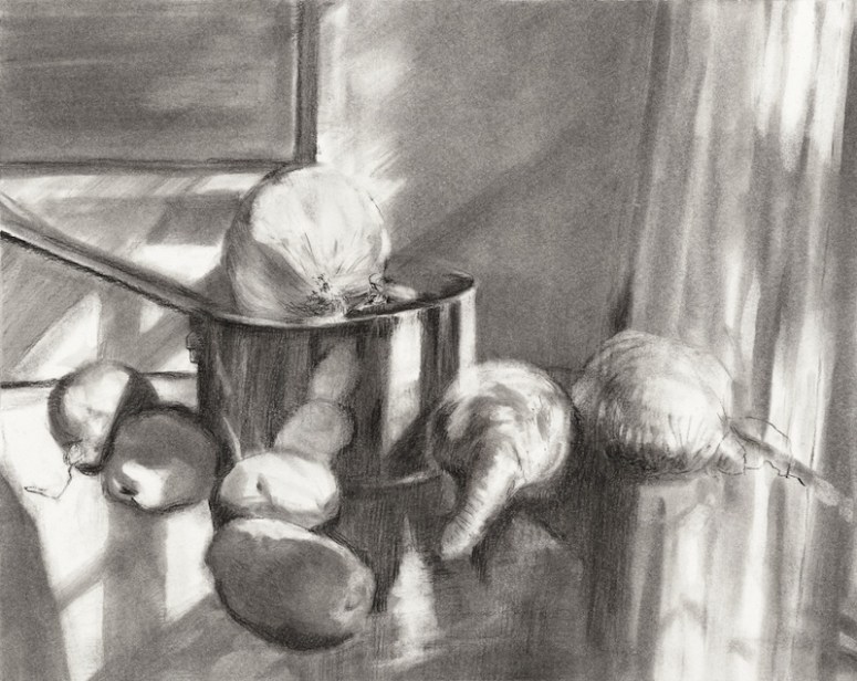 Still Life with Onions, Charcoal Pencil on Paper ~ 9.25” X 11.75”