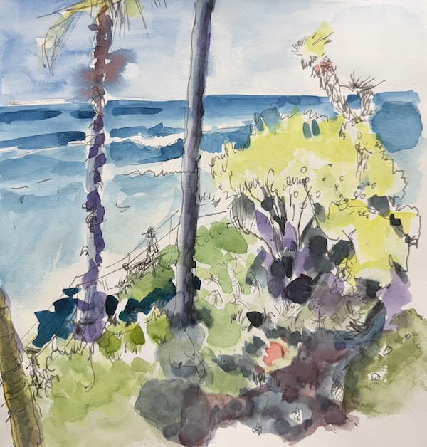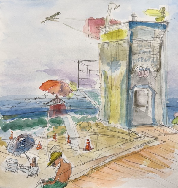 Beach Scene 1, Ink and Watercolor on Paper