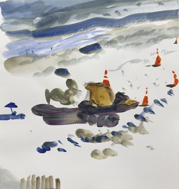 Beach Scene 2, Ink and Watercolor on Paper