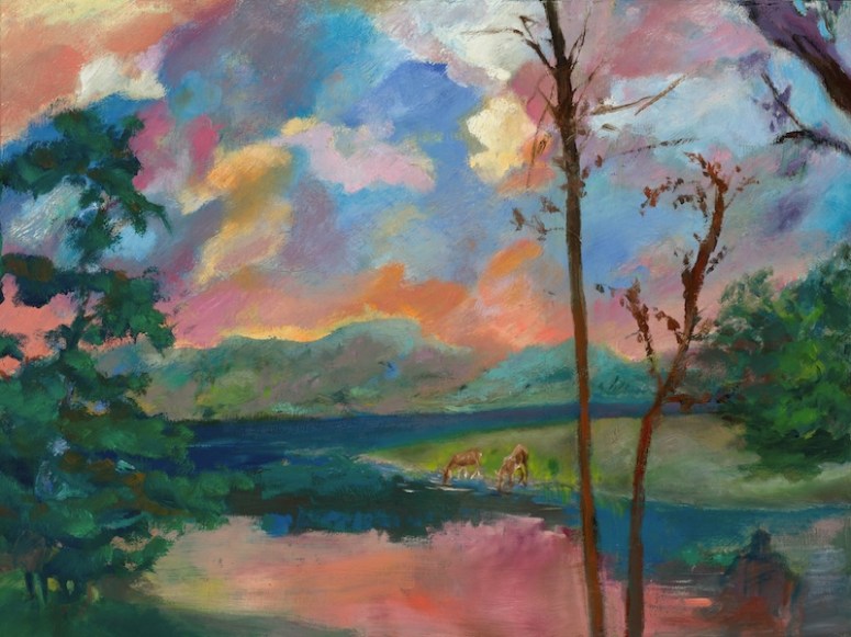 Deer Drink, Oil on Gesso Board ~ 12” X 16”