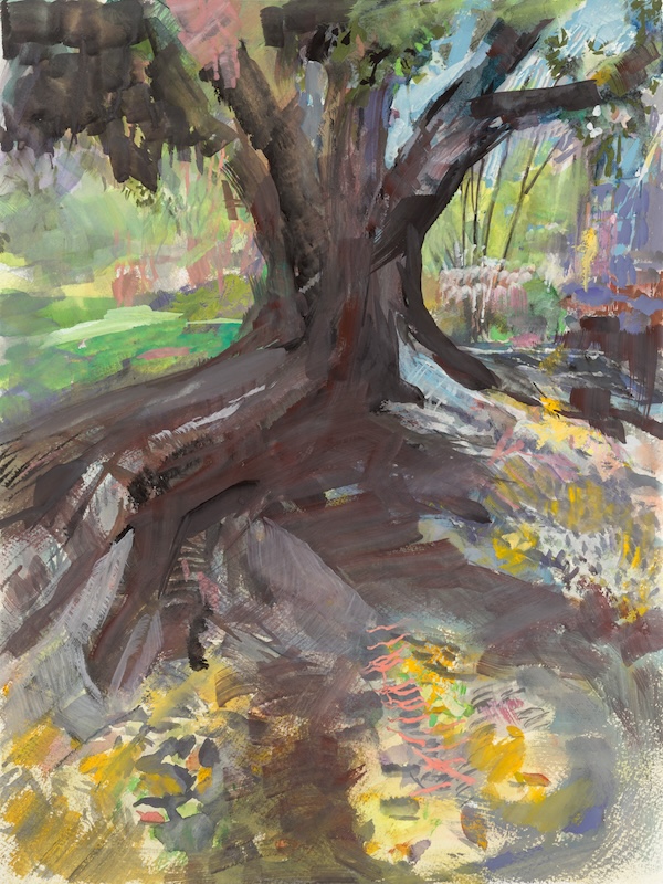 Old Tree at South Pasadena Library, Watercolor, Gouache and Pastel on Paper ~ 16” X 12”