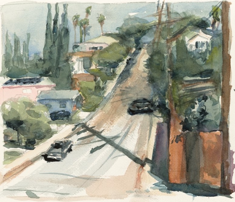 Steep Street in L.A., Watercolor on Paper ~ 9 1/2” X 8.25” x 9.5”