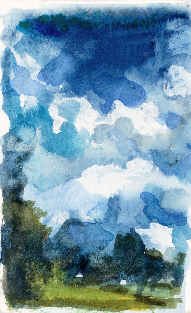 Tornado Warning in St. Louis County, Watercolor on Paper ~ 5” X 3”